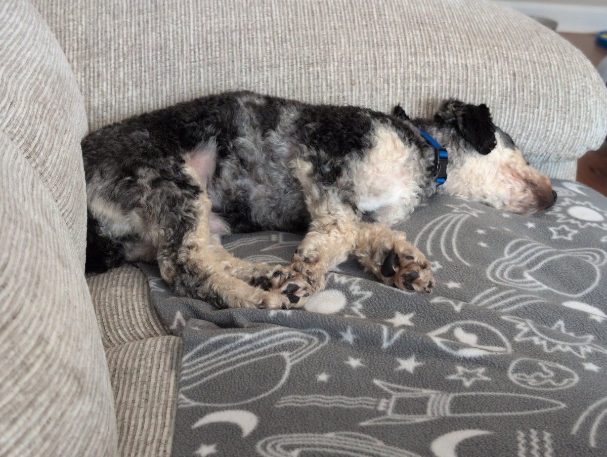 He has Hyperthyroidism, takes medicine for him to live longer & has “Rat” Alser (SP?) on his chin, wound that never goes away & scabs over, but flakes off & then bleeds.