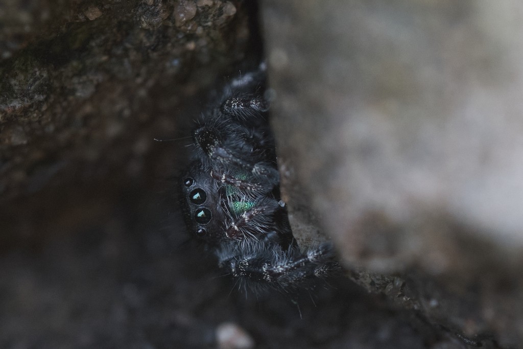 I have a large terrarium where I grow various types of moss. I keep springtails in there to handle any mold that pops up, but some creature (fungus gnat larvae?) was killing off the springtails. So I captured a jumping spider, thinking it would gobble up the fruit flies/larvae. The fungus gnats have disappeared, so it seems like the spider might have done the job, but now I'm worried about it getting hungry.