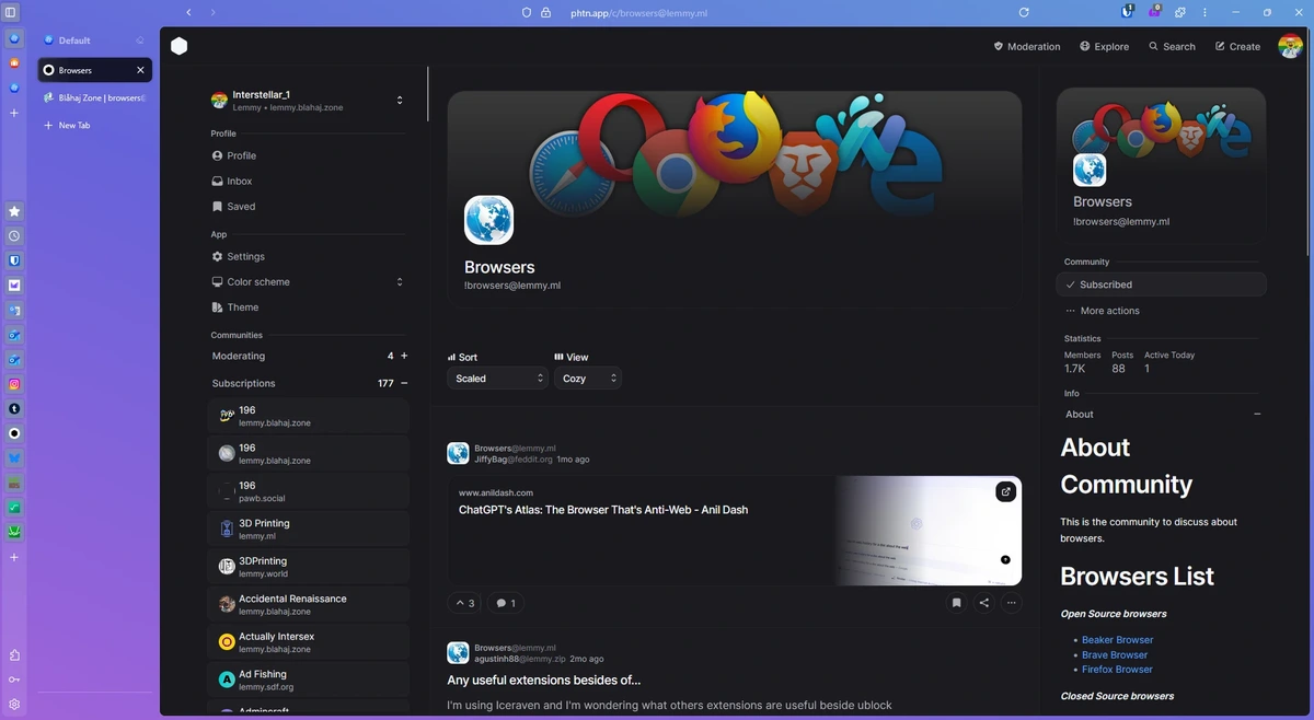 Would someone please recommend me another chromium based open source browser with fingerprint and crosswebsite cookies and tracking protection, in which I could install uBO, that works on PC and Android (and syncs between), that can make webapps, and it's not maintained by 1 or 2 guys? I would happilly switch from brave to get rid of the bloat!