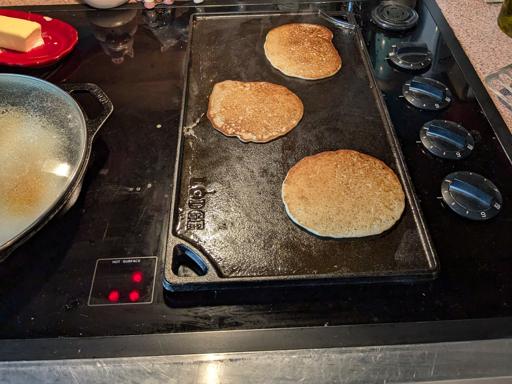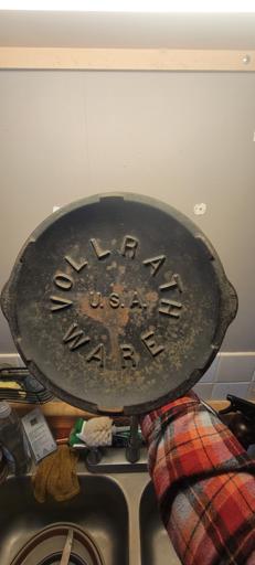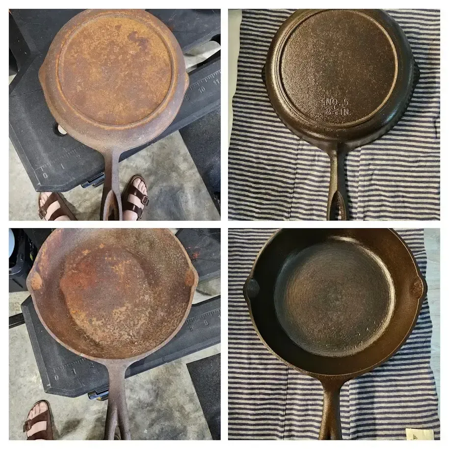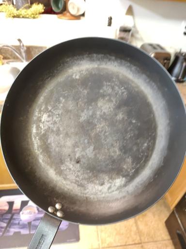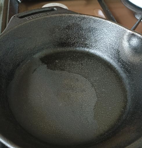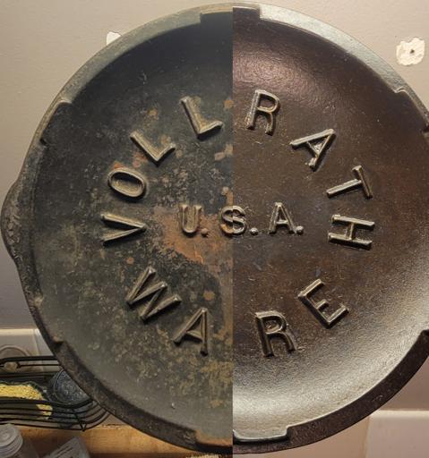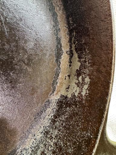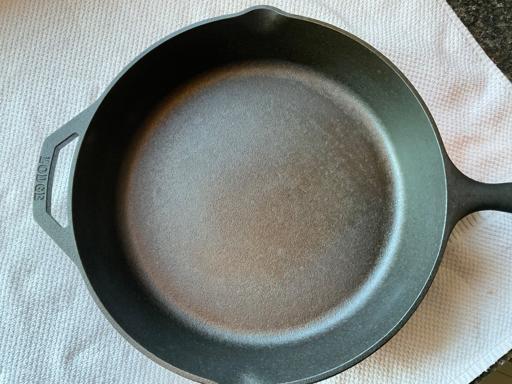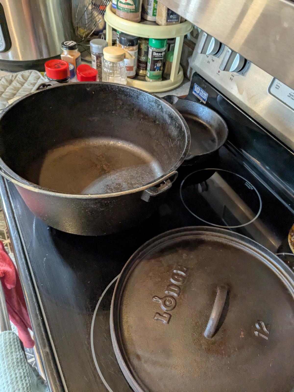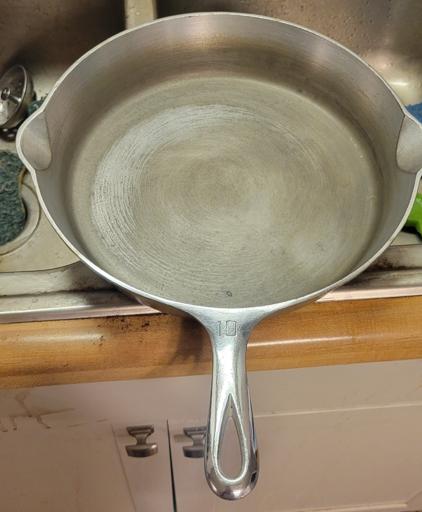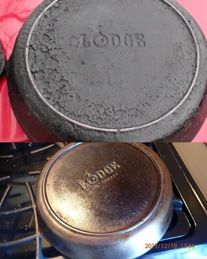 This pan was difficult to get completely stripped, but I prevailed in the end. I used Easy-Off, and it took multiple tries to get the stubborn stuff off. This is while applying the first coat of shortening to the bare iron. I tested both pans for lead, even though I've been using them both for a number of years. Thankfully, they tested negative.