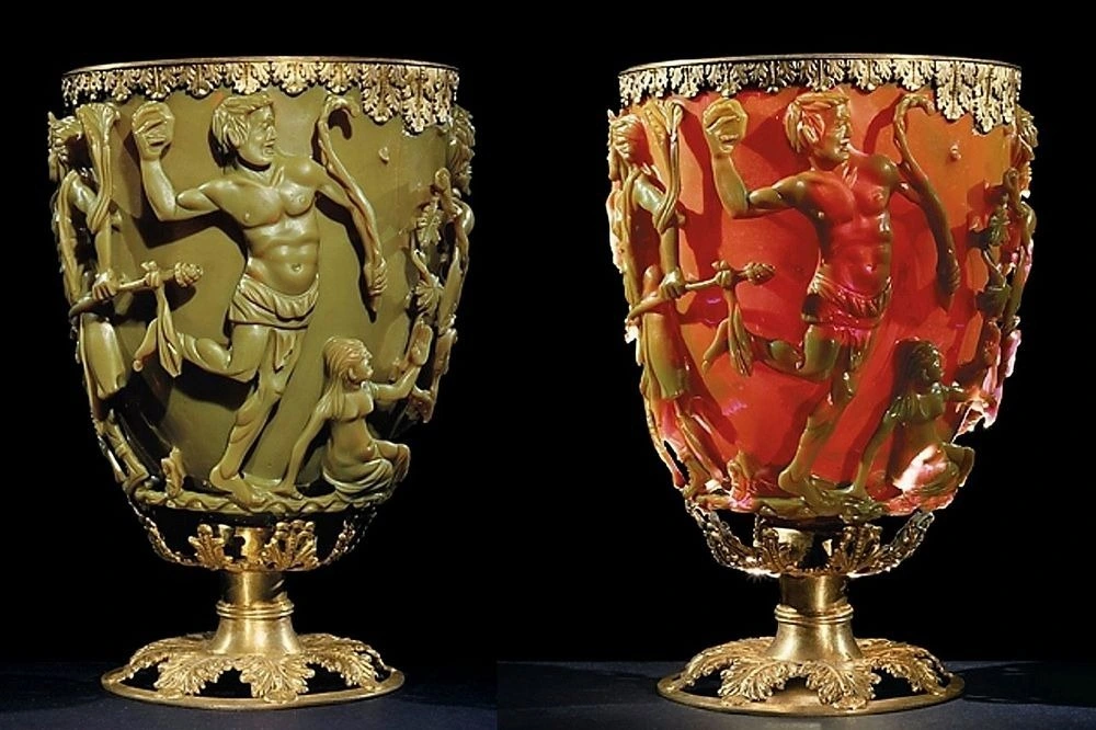 The Lycurgus Cup, which changes color when lit from behind, Roman Empire, 4th century AD