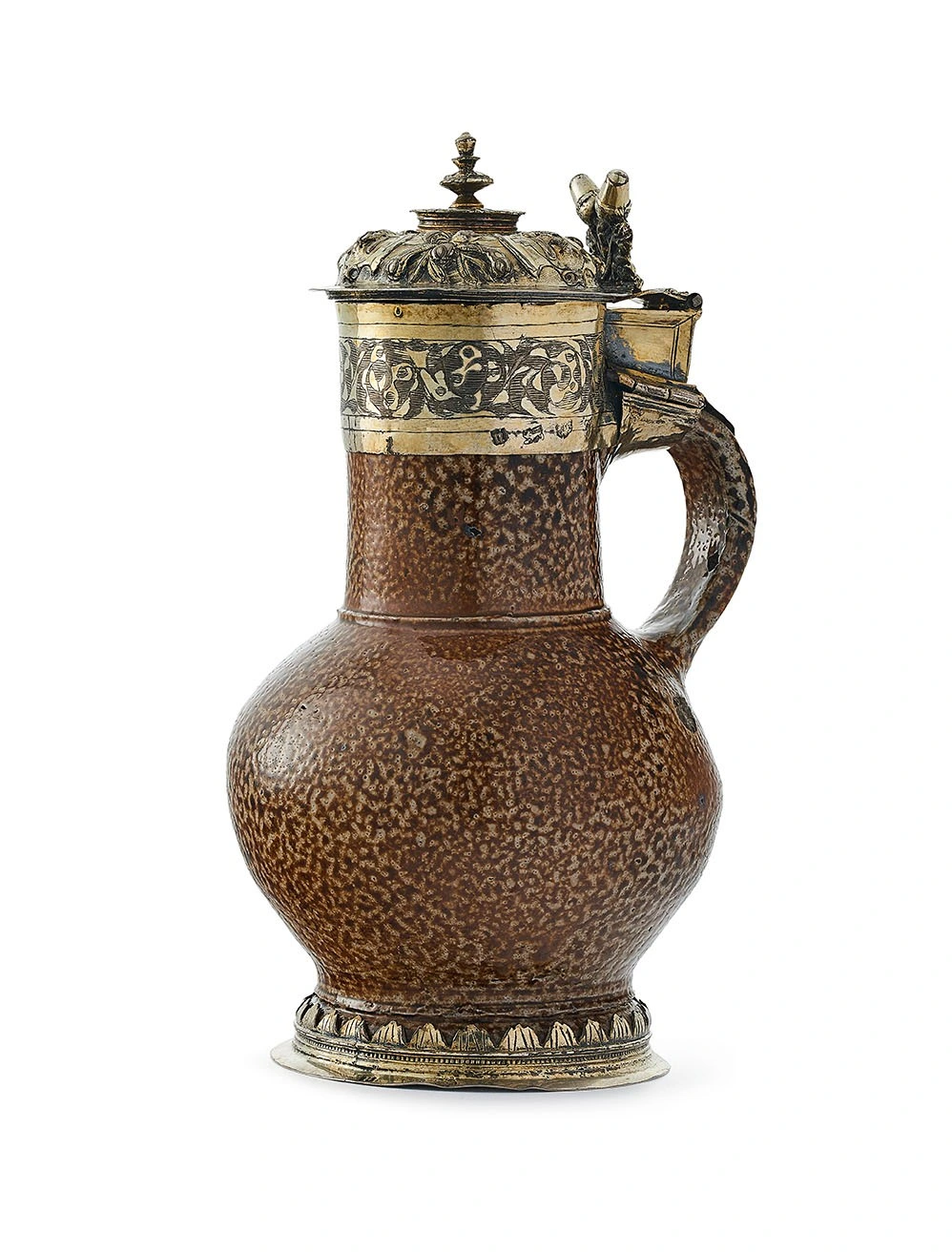 Stoneware tankard with silver fittings, London, England, 1577 AD