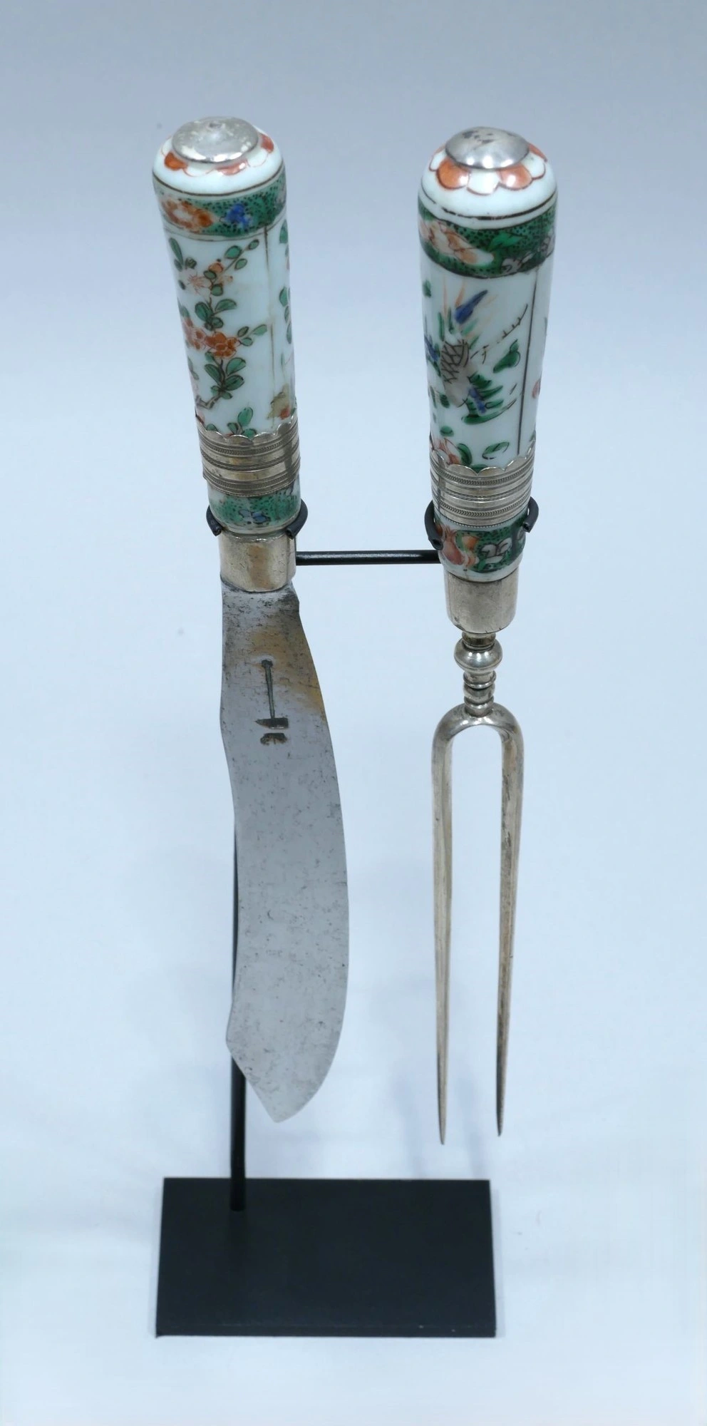 Knife and fork with decorated porcelain handles, China, late 17th/early 18th century AD