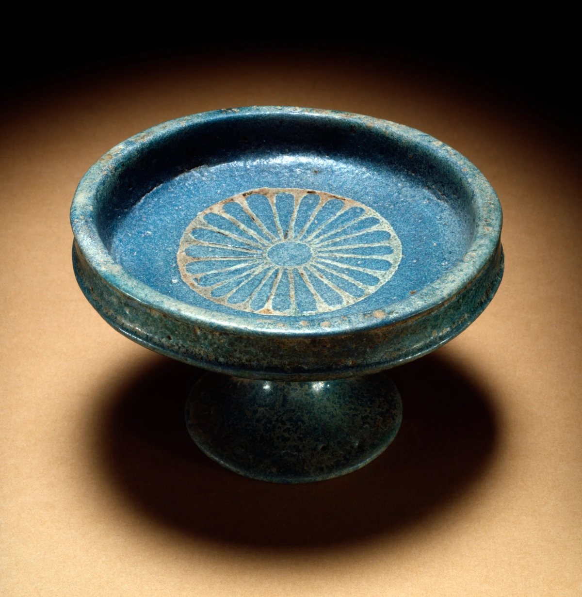 Ancient Egyptian dish and stand, metal-glazed pottery, 15th century BCE