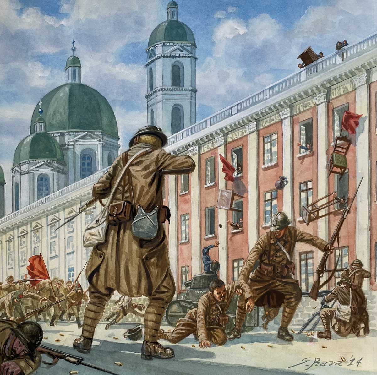 This circa 1831 print is an advertisement for the gymnasium operated by James Roper on the 800 block of Market Street in Philadelphia. The illustration shows the interior of the facility, in which men exercise in front of a crowd of spectators. On the right, three men perform moves on a balance beam next to a wall with a rack from which boxing gloves and squash rackets hang. Beside the beam, two men wearing boxing gloves are talking near the pommel horse. In the front center and left of the room, two pairs of men are fencing; one pair are wearing fencing masks. Others in the gymnasium pull weights attached to the ceiling of the building, test their strength on the parallel bars, climb vertical and inclined ropes, hang and climb from exercise ladders, straddle and perform pull-ups on horizontal poles, and dangle upside down from a trapeze. Spectators, including several men and a few women in winter clothing, watch from around the room. Roper established the gymnasium circa 1831. Around 1833 it relocated to the 800 block of Walnut Street. The lithograph is by Edward Williams Clay, a Philadelphia native, who was a prolific caricaturist as well as a portrait painter, engraver, and chronicler of the city.