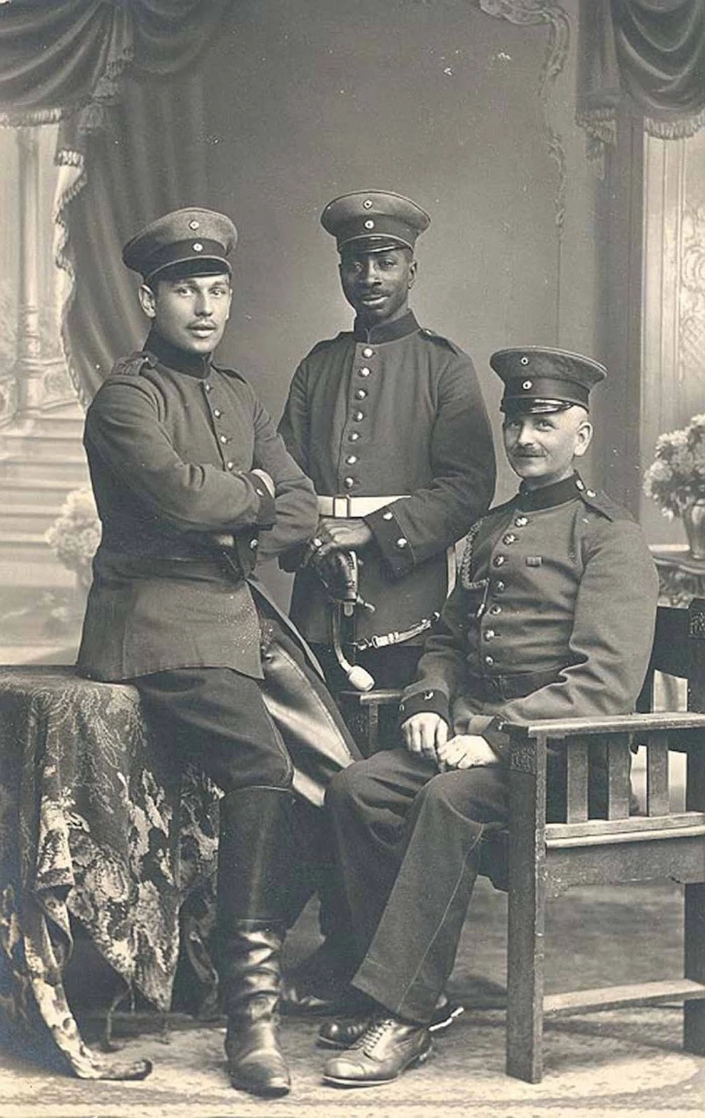 Sergeant Josef Mambo (center) of the Imperial German Army, WW1, ~1916?