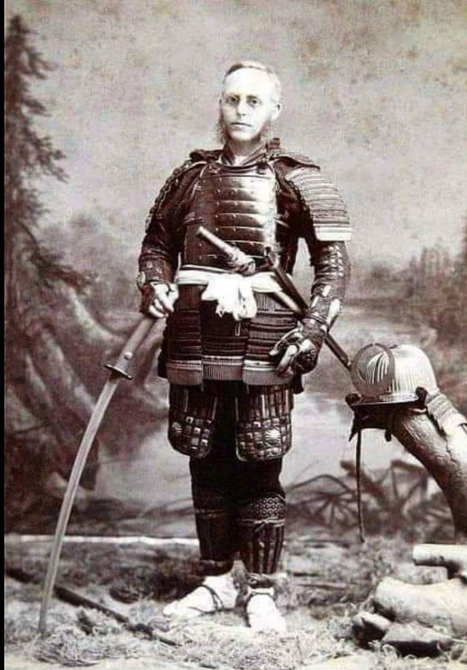 English tourist dressed in Samurai armor, Japan, ~1890