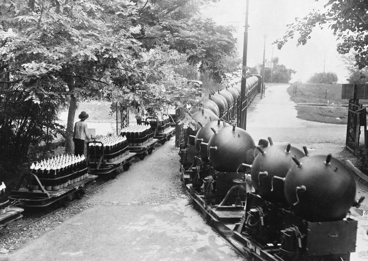 Narrow-gauge railway carrying shells and sea mines, the Netherlands, 1939