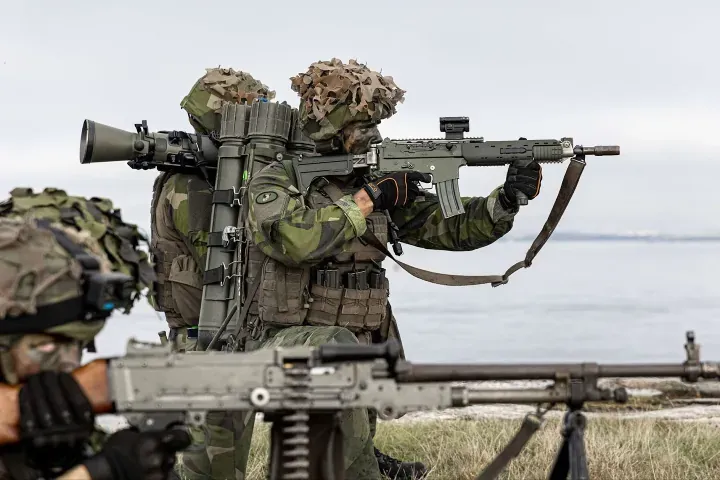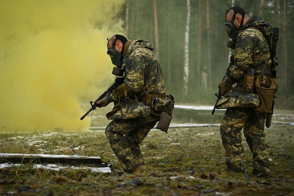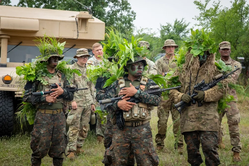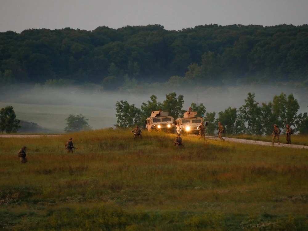 Full description: Armed Forces of Ukraine soldiers assault an OPFOR controlled mock village during training at Rapid Trident 2021. This training was part of a demonstration for visiting dignitaries from various participating nations. Rapid Trident 2021 involves approximately 6,200 personnel from 12 nations, Sept. 20- Oct. 1, 2021, at the International Peacekeeping Security Centre near Yavoriv, Ukraine. Rapid Trident is an annual, multinational exercise that supports joint combined interoperability among the partner militaries of Ukraine and the United States, as well as Partnership for Peace nations and NATO allies