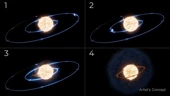...According to the standard cosmological model, small galaxies merge over time in a chaotic process to form larger ones, leaving behind swarms of faint dwarf galaxies that orbit massive host galaxies in an almost random arrangement...Instead of being randomly spread around their host galaxy, as the standard model of cosmology predicts, over 80% of these dwarf galaxies are concentrated on one side of the Andromeda galaxy...Specifically, all but one of Andromeda's satellites lie within 107 degrees of the line pointing towards the Milky Way, a region covering only 64% of the host galaxy's surroundings..."We have to look at more than three hundred simulated systems to find just one that is similarly extreme in its asymmetry as observed." This makes Andromeda an extreme outlier, defying cosmological expectations.
