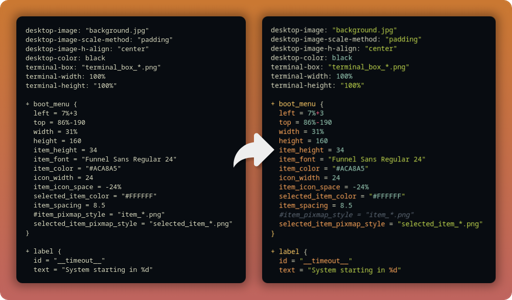I recently switched from Code Saver to my own Iosevka configuration, and at first I found it to look great in Neovide but too narrow in my terminal, especially with FFmpeg output. I thought maybe it was due to font rendering differences, like spacing or character widths. But then I took a screenshot with the font sizes set the same in both apps, and overlaid a word in one app to another ... and the text is rendered the same.