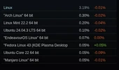 The Steam Survey results for December have the Linux gaming marketshare at 3.19%, or just a 0.01% compared to the month prior. That’s still much better than year-over-year when for December 2024 it was at 2.29% or below 2% for December 2023. If more Steam users were active in general thanks to the year-end holidays or for taking advantage of winter sale discounts, Steam on Linux at 3.19% still may be similar or larger in absolute terms than November