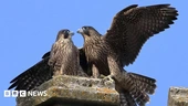The peregrine falcons nest on the spire of Chichester Cathedral in West Sussex.