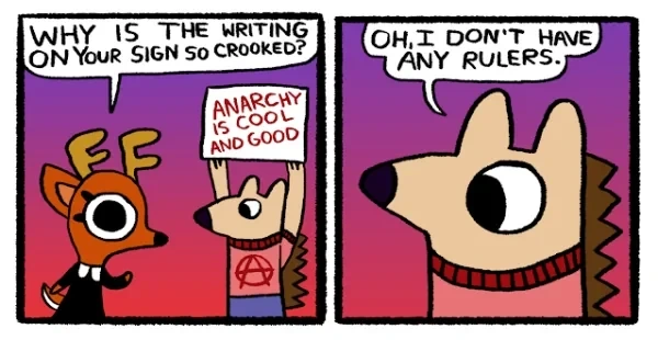 Anarchism doesn’t require waiting for the perfect moment, nor does it result the worst outcome. You can start working towards it today, building up parallel to society. Build up local connections, join groups like Food Not Bombs, learn skills and teach others, and always engage in direct action.